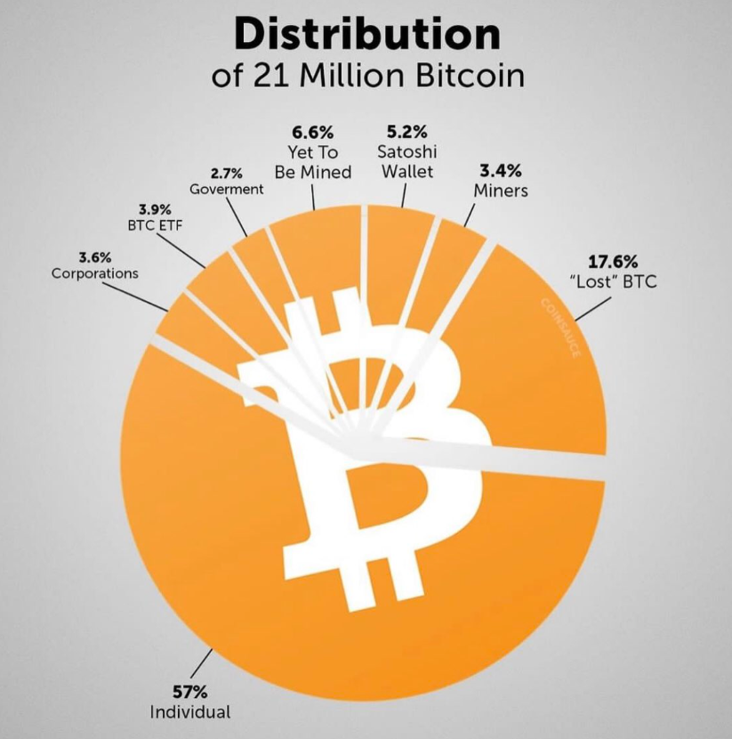 개인보유 비트코인 : 57%(개인이라지만 대부분은 고래물량이며 찾지 못하는 수량도 엄청남)